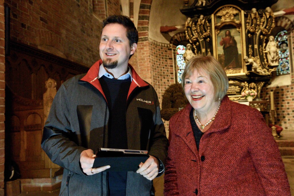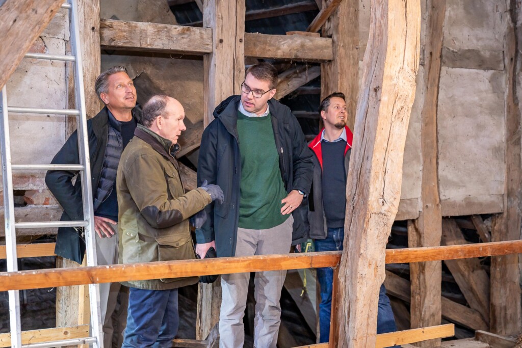 Die Vertreter der Kirchengemeinde hatten bereits am Vormittag des Tages den CDU-Bundestagsabgeordneten Sebastian Schmidt zu Gast, der ebenfalls bis in den Turm hinaufkletterte, an den Ausführungen der anwesenden Fachleute sehr interessiert war und seine Unterstützung zusagte. Schmidt hat eine biografische Verbindung zu Altenkrempe, spielte er doch als Jugendlicher im dortigen Fußballverein, „eine richtig tolle, coole Zeit“, wie er sagte. Der im Wahlkreis direkt gewählte Bundestagsabgeordnete sprach von einer „beeindruckenden, bemerkenswerten Kirche“. Er könne nicht versprechen, dass die Gelder bewilligt würden, aber er wolle sich „aus vollem Herzen und aus voller Überzeugung“ dafür einsetzen, „dass Sie möglichst viel Förderung bekommen“, so Schmidt. Er beließ es nicht bei Worten – sondern füllte sogleich einen Mitgliedsantrag für den Förderverein der Kirchengemeinde aus.
