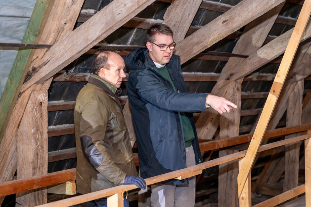 Nein, Zweifel an ihrem Willen, die Sanierung der Basilika in Altenkrempe mit aller Kraft zu unterstützen, ließen weder Bettina Hagedorn (SPD) noch Sebastian Schmidt (CDU) aufkommen, als sie am Donnerstag (20. November) vor Ort waren, um sich ein genaues Bild von den Schäden an der Dachkonstruktion der Kirche zu machen. Beide Bundestagsabgeordneten sagten zu, sich in Berlin dafür einzusetzen, dass die Kirchengemeinde Altenkrempe einen Zuschuss aus dem Denkmalschutz-Sonderprogramm des Bundes (BKM) in Höhe von einer halben Million Euro erhält, der für den ersten Bauabschnitt dringend benötigt wird. Sowohl Hagedorn wie auch Schmidt fühlen sich Altenkrempe und der Basilika auch persönlich auf besondere Weise verbunden – und bekamen vor Ort einen detaillierten und fachlich fundierten Einblick, warum einige Arbeiten keinen Aufschub dulden.